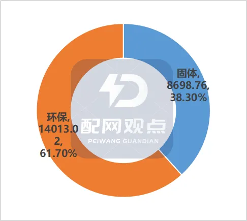 招标类型有两种,环保和固体,环保总计1.4亿,占比61.7%,固体的8698万,占比38.3%。