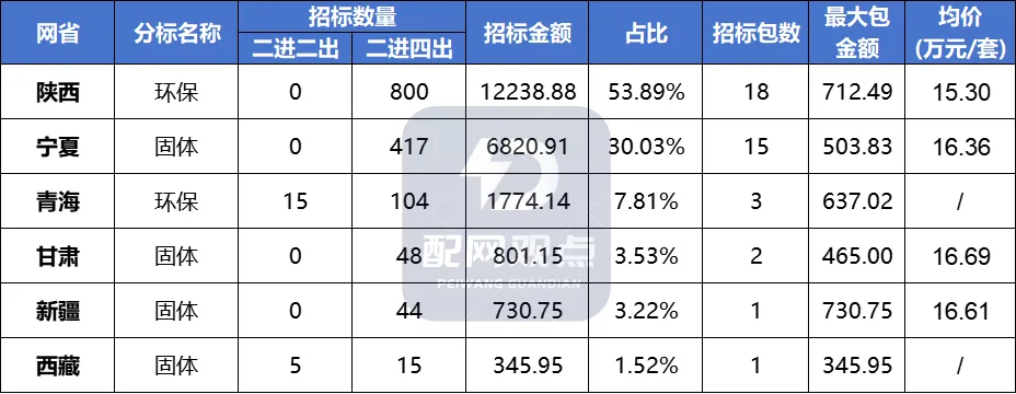 总计六省招标,陕西占了一半多,占比为53.89%,宁夏其次,占比30%,这俩省加起来已经超过80%了。