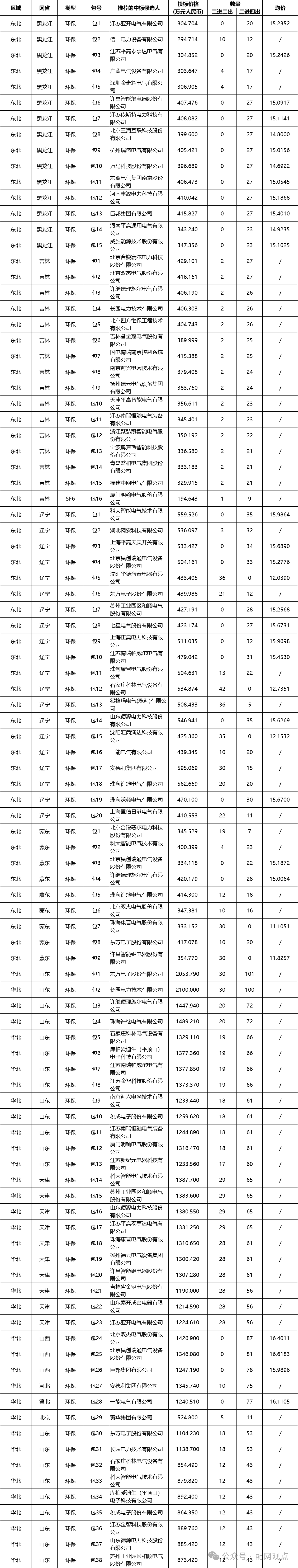 第一次区域联合采购环网箱均价汇总