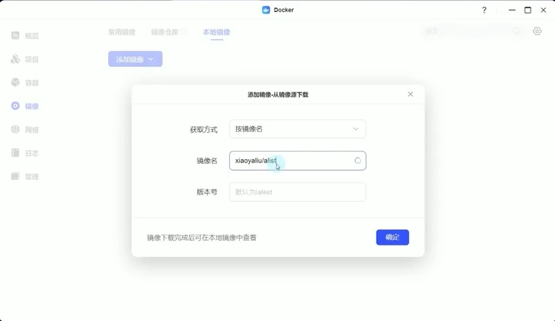 点击Docker容器,进入镜像仓库搜索xiaoyaliu/alist并下载。