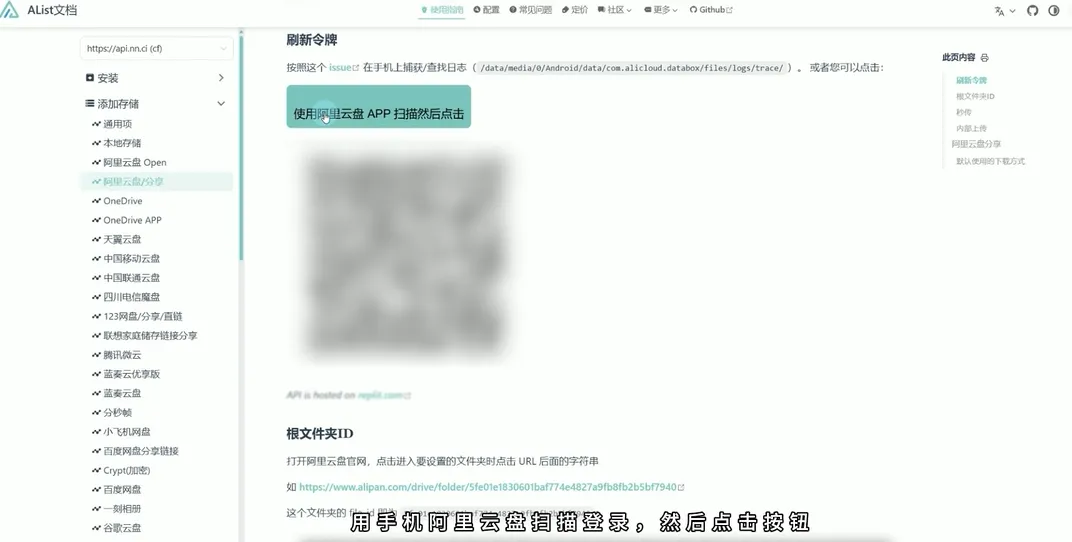 接着进入该网址https://alist.nn.ci/zh/guide/drivers/aliyundrive.html,点击获取mytoken。