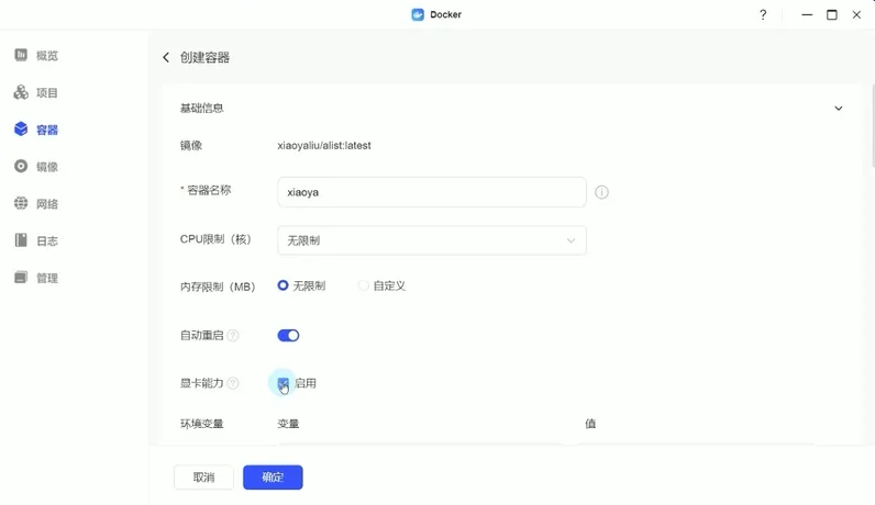 绿联仅提供支持创建Docker镜像的环境,不对因操作失误造成的风险及后果负责,您应自行判断并承担因信赖或使用这些信息所可能产生的风险。绿联仅提供支持创建Docker镜像的环境,不对因操作失误造成的风险及后果负责,您应自行判断并承担因信赖或使用这些信息所可能产生的风险。
