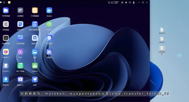 在电脑桌面鼠标右键,新建三个文本文档,分别命名为:mytoken、myopentoken以及temp_transfer_folder_id。