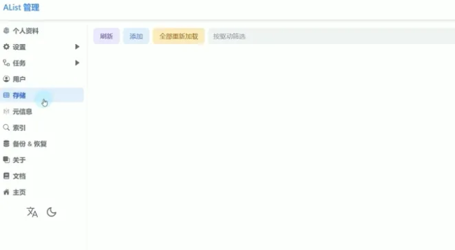 点击页面下方的【管理】按钮可以修改账户名与密码,接着点击左侧菜单栏的存储按钮,并点击添加。