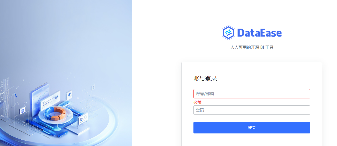 安装成功后,在浏览器访问 http://ip:8100即可。默认账号:admin,默认密码:DataEase@123456