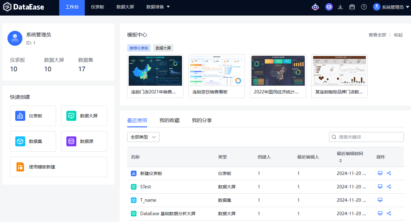 官方Demohttps://demo.dataease.cn/#/login?redirect=/workbranch/index