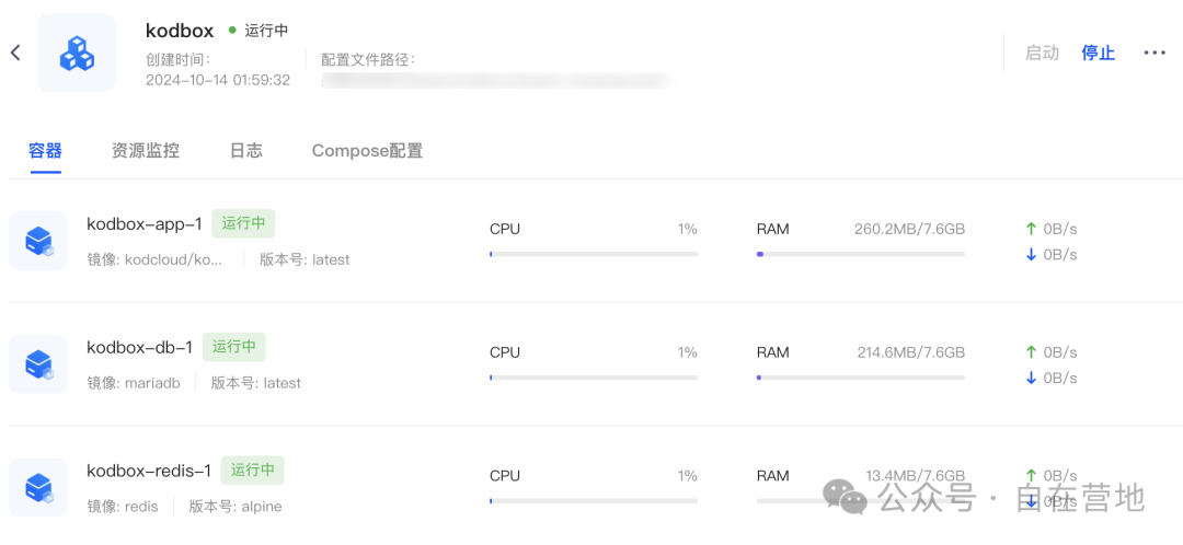 接下来开始安转“kodbox”应用,这个要稍微麻烦一些,去公网文档查找、在百度找方法,不断试错终于还是利用docker compose完成了安装。对于安装方法可以参考“博客园”提供的方法 点击访问。