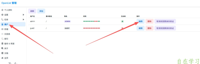 默认账密admin 进去以后点管理-用户-编辑把所有权限都打开-保存
