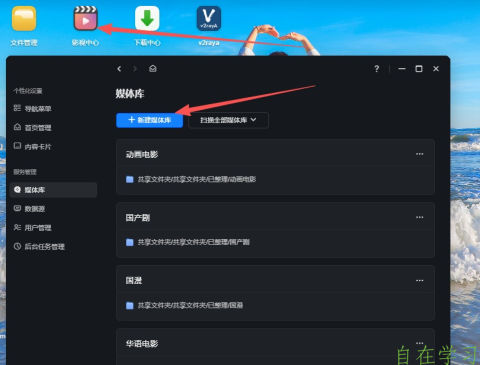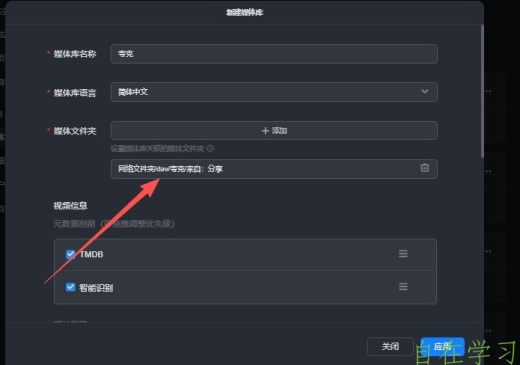 然后就简单了,我们吧网络文件夹挂载到影视中心,开看